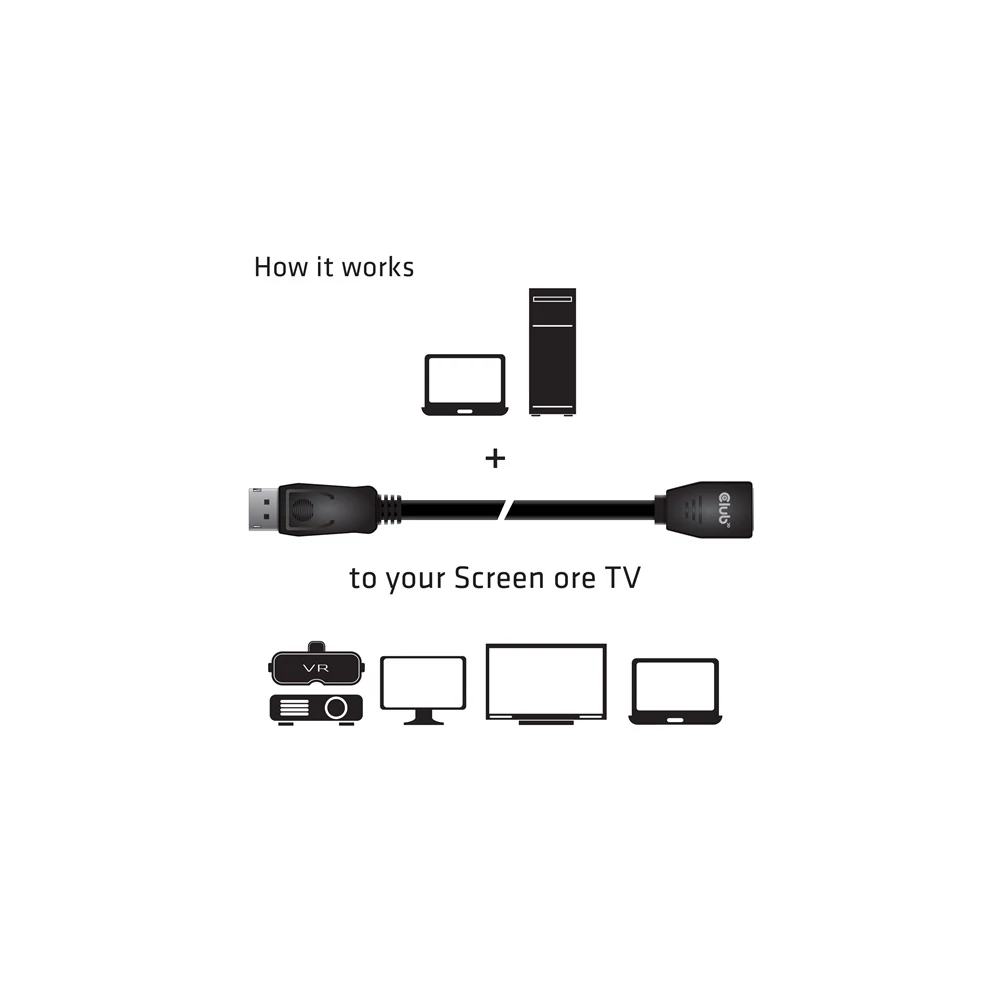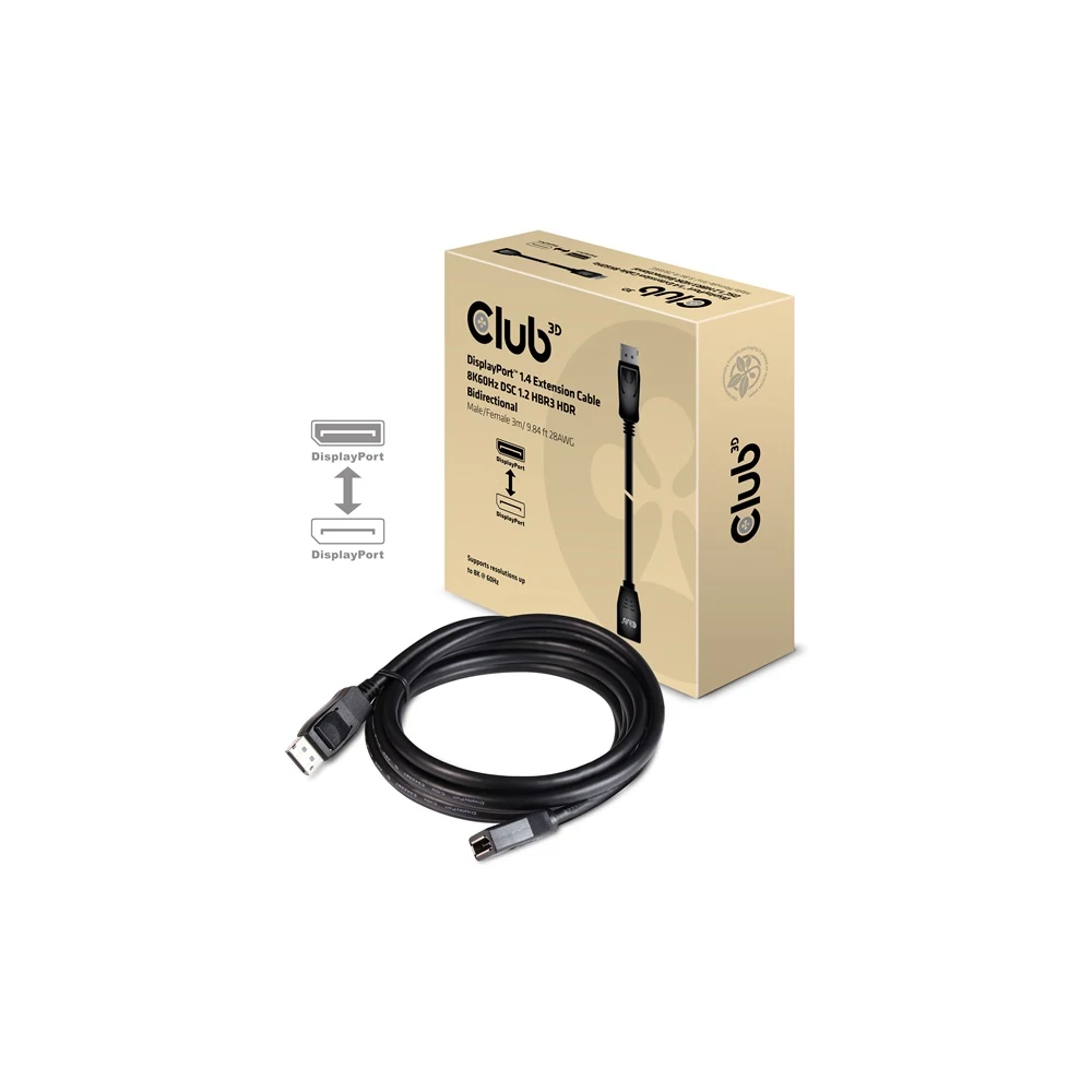 • Club 3D DisplayPort™ 1.4 hosszabbítókábel 8K60Hz DSC 1.2 HBR3 HDR kétirányú apa/nő 3 m/ 9,84 láb 28AWG