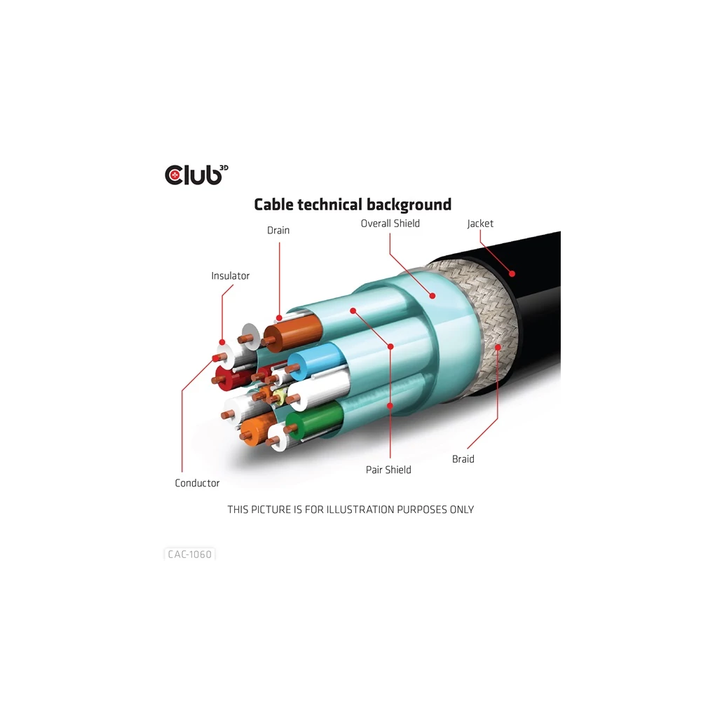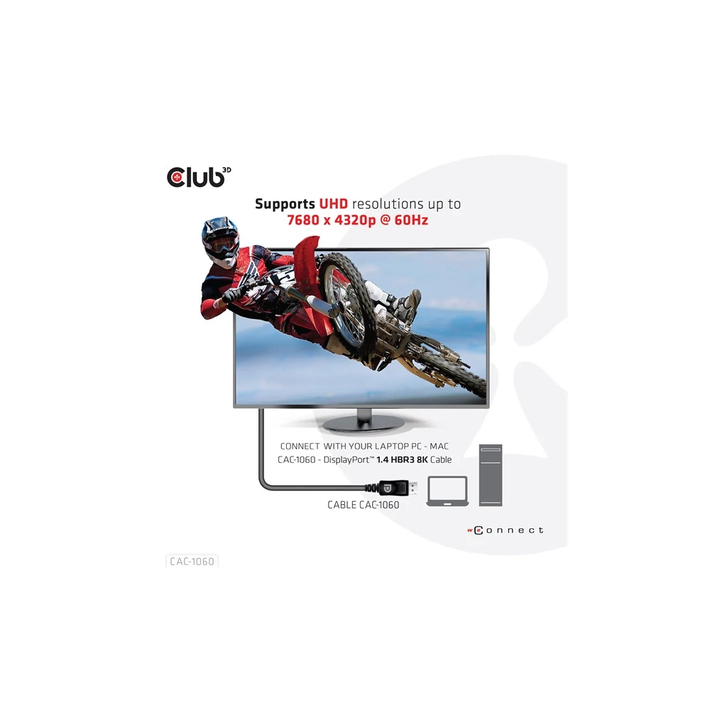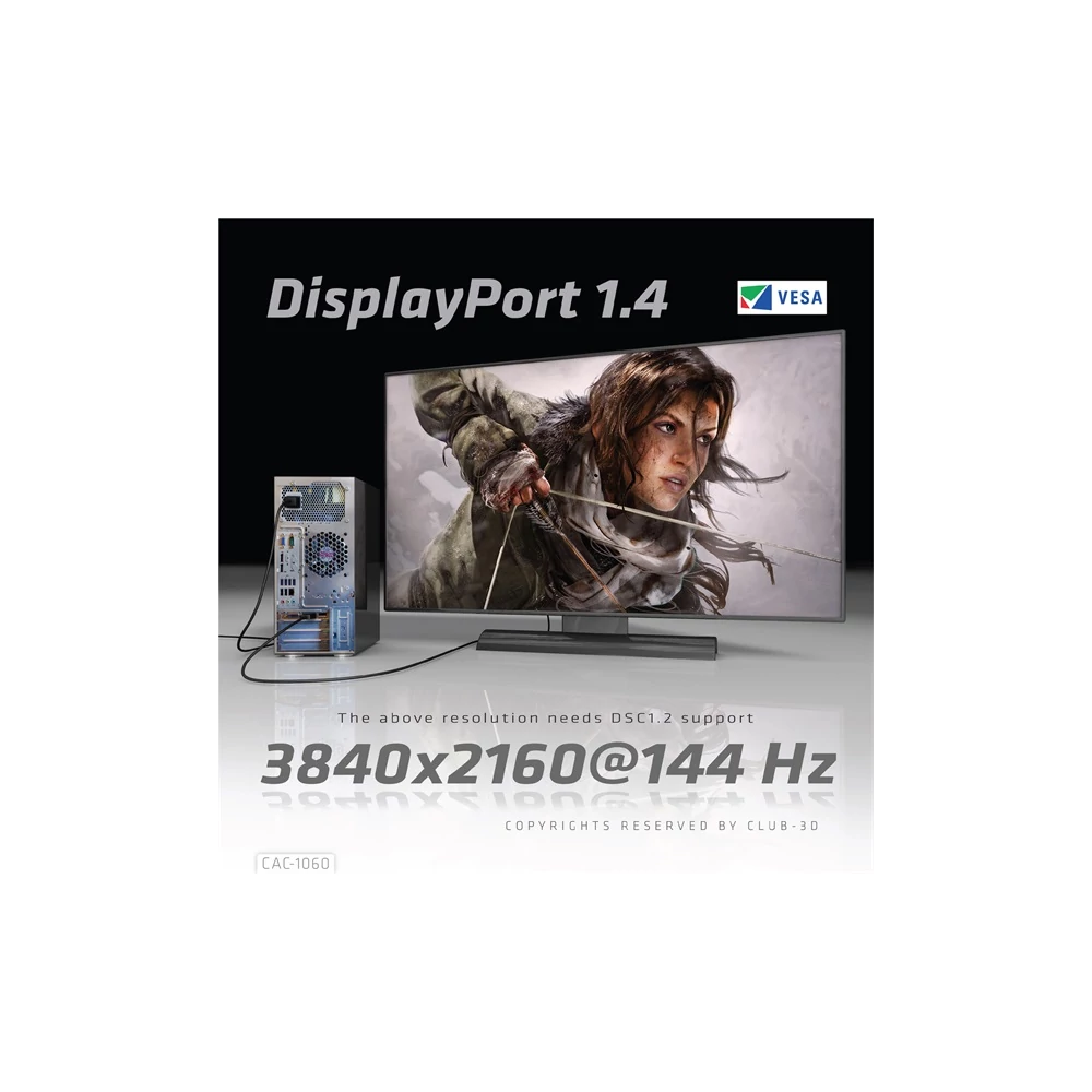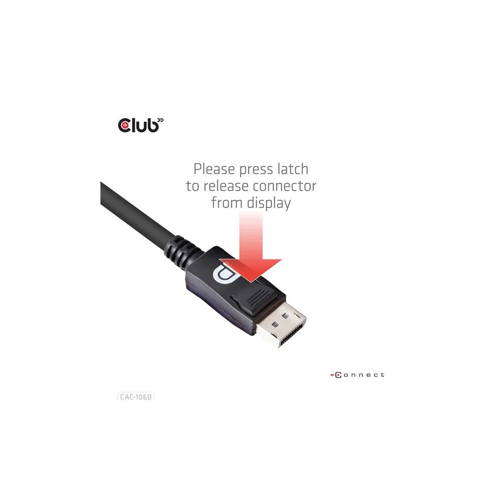 A Club 3D DisplayPort™ 1.4 HBR3 8K kábel lehetővé teszi a DisplayPort™-ot támogató (játékos) PC vagy laptop csatlakoztatását egy (Ultra) Nagy Felbontású Monitorhoz vagy más DisplayPort™-ot támogató eszközhöz. A DisplayPort™ 1.4 támogatja a Display Stream Compression 1.2 (DSC), a Hibajavító Kódok (FEC), valamint növeli a maximális fenn álló audió csatornák számát 32-re. Zárható DisplayPort™ csatlakozókkal rendelkezik, amelyek biztonságos, megbízható kapcsolatot biztosítanak. Egyszerűen csak nyomja meg a beépített egyérintős zárgombot a csatlakozó kioldásához. A puha UltraFlex köpeny megvédi a kábelt az ívek és deformációk okozta sérülésektől. Specifikációk: • Teljes mértékben megfelel a DisplayPort™ 1.4 szabványnak, HBR3, 32.4Gbps, 28AWG • Támogatja a Display Stream Compression (DSC) 1.2-t • Támogatja a Hibajavító Kódokat (FEC) • Akár 32 hangcsatorna támogatása • Visszafelé kompatibilis a régebbi DisplayPort szabványokkal • Akár 8K @ 60Hz és 4K @ 144Hz felbontás támogatása • DSC1.2 nélkül a maximális támogatott felbontás: 5K @ 60Hz • Vesa tanúsítvánnyal rendelkezik Operációs rendszer támogatás: Minden Bemenet: DisplayPort™ 1.4 Male Kimenet: DisplayPort™ 1.4 Male További információ: • Doboz mérete: 210 x 210 x 50 mm • Doboz súlya: 64 gr • Termék súlya: 219 gr • Termék súlya kiskereskedelmi dobozban: 283 gr • Termék magassága: 12 mm • Termék szélessége: 19 mm • Termék hossza: 3 méter / 9.84 láb • Megfelel a ROHS, FCC és CE EMI követelményeinek • Kínában készült A csomag tartalma: Club 3D DisplayPort™ 1.4 HBR3 8K Kábel Gyártói termékoldal