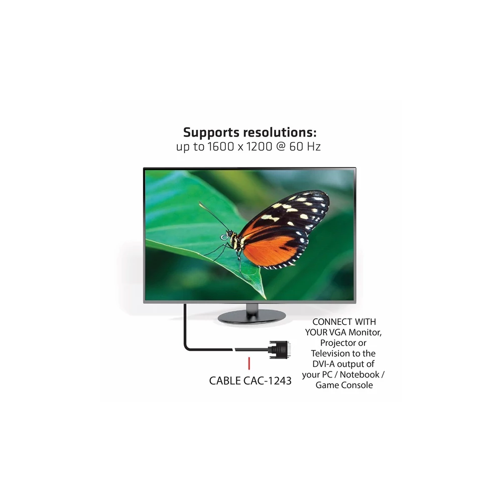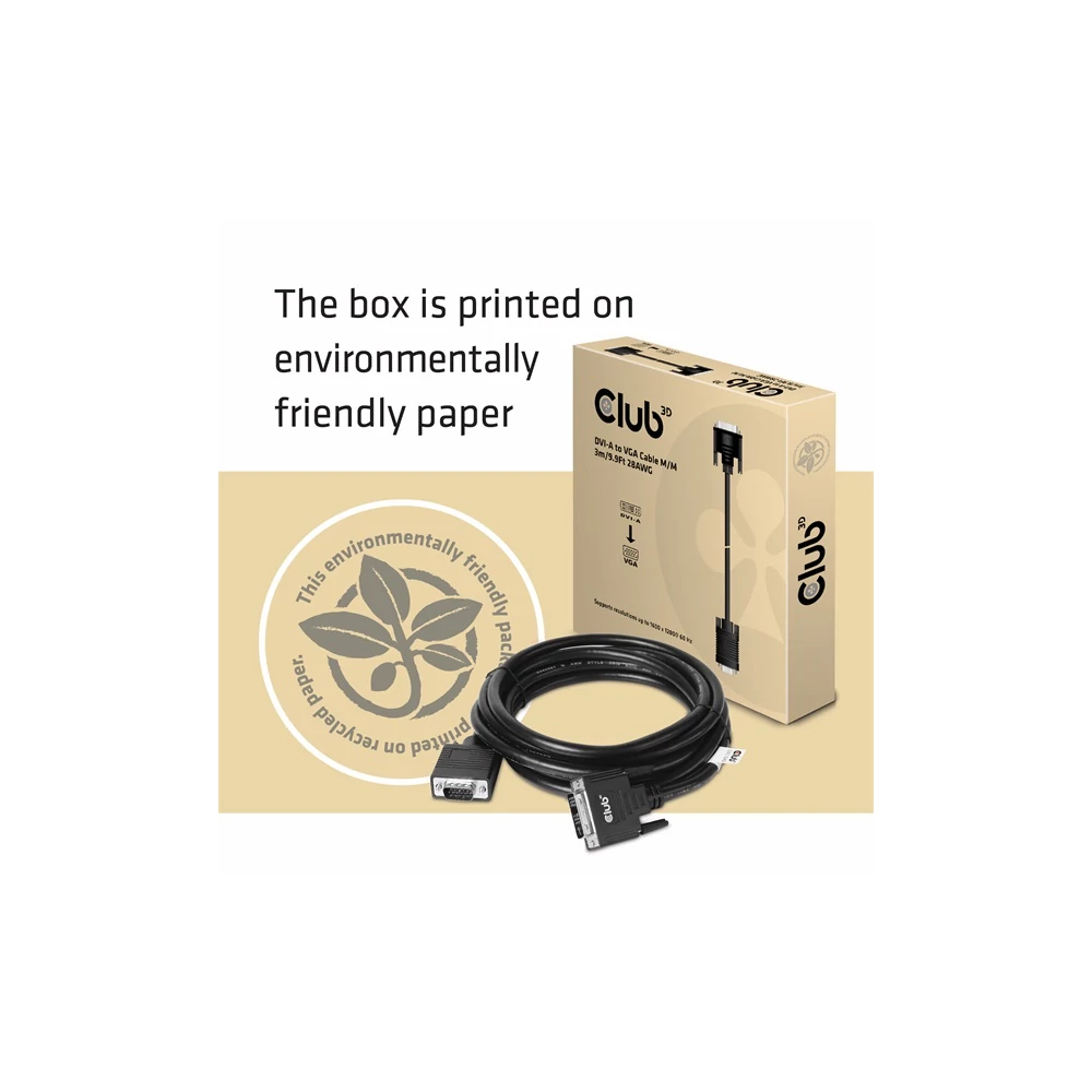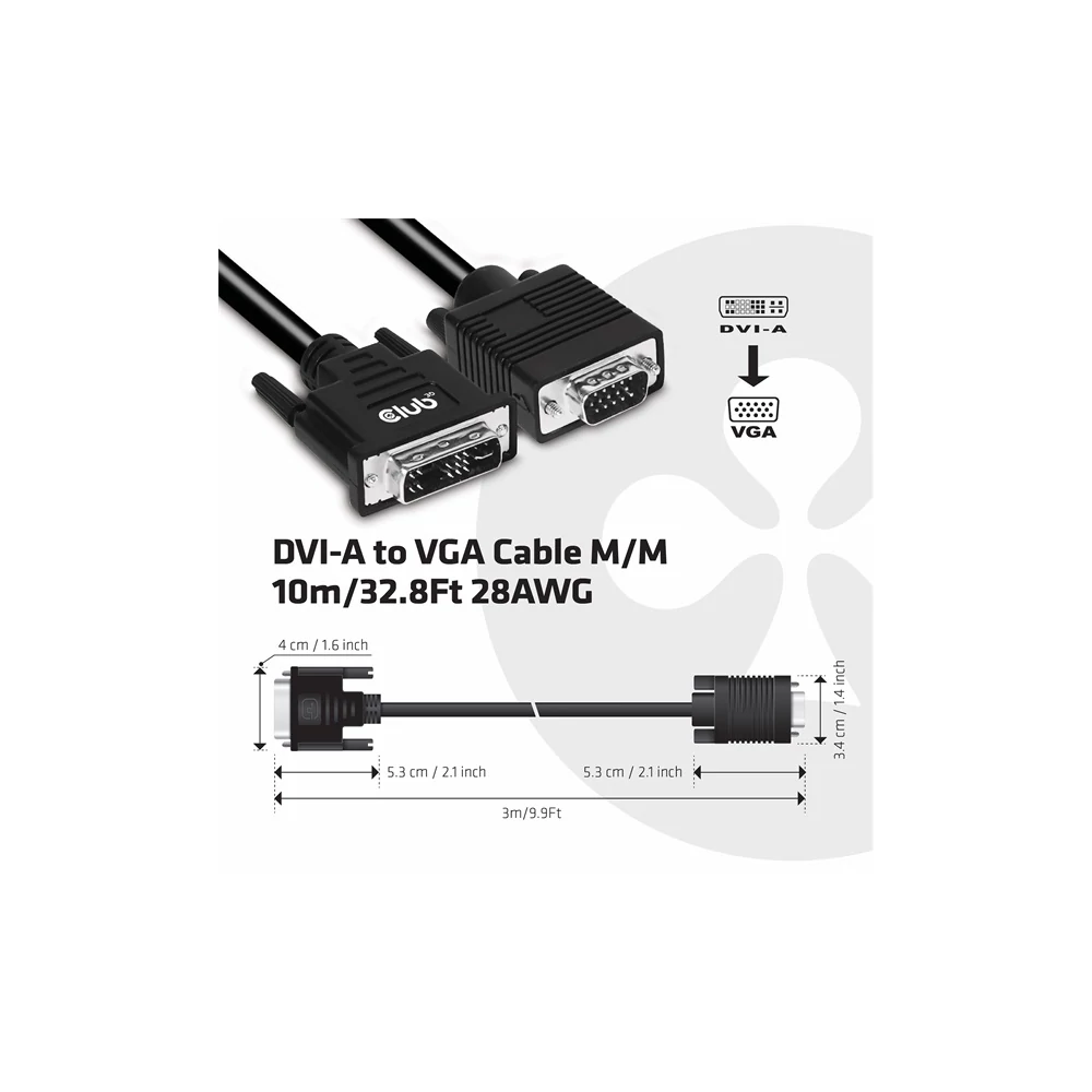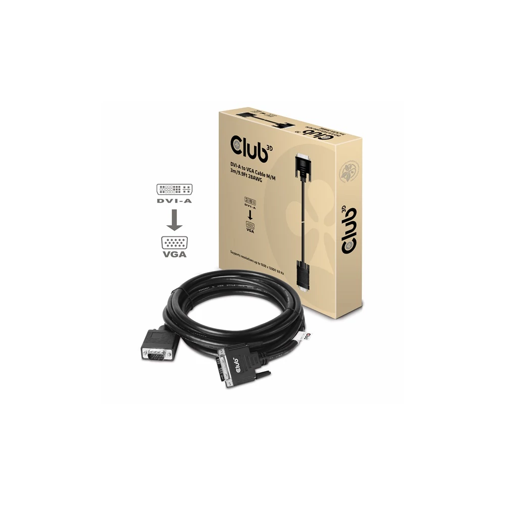 A Club 3D CAC-1243 egy DVI-A Male to VGA Male kábel. Ez a kábel unidirectional. Ez a CAC-1243 kábel a legkönnyebb megoldás VGA monitor, projektor vagy televízió csatlakoztatására a PC / Notebook / Játék Konzol DVI-A kimenetére.