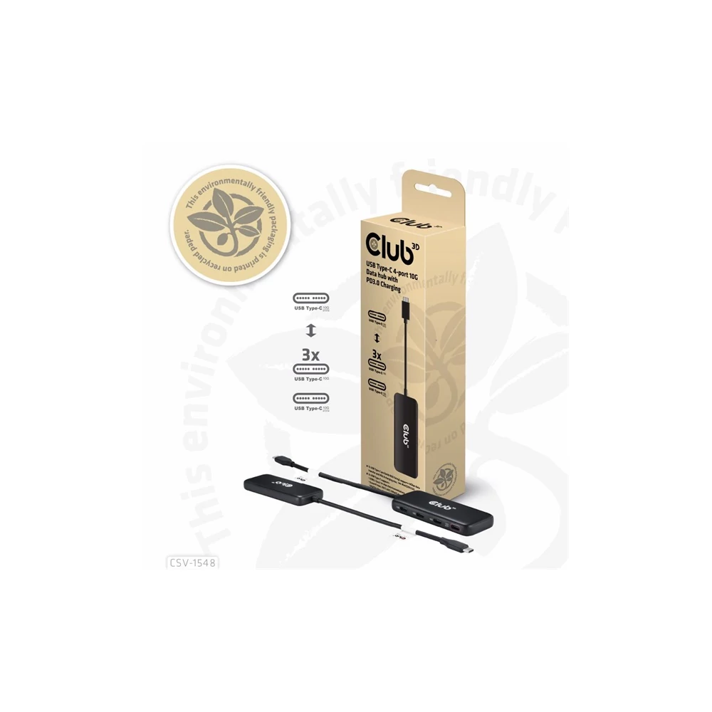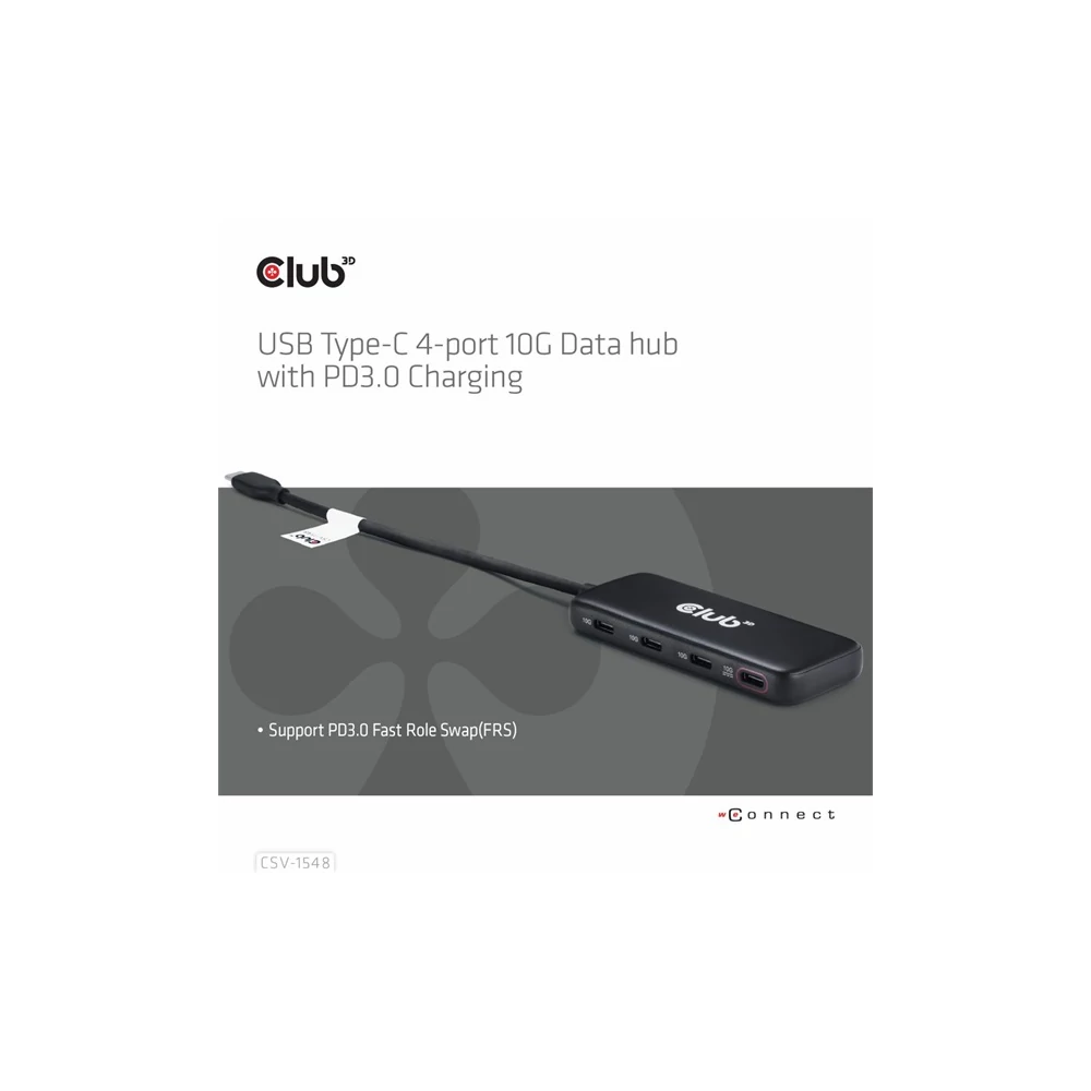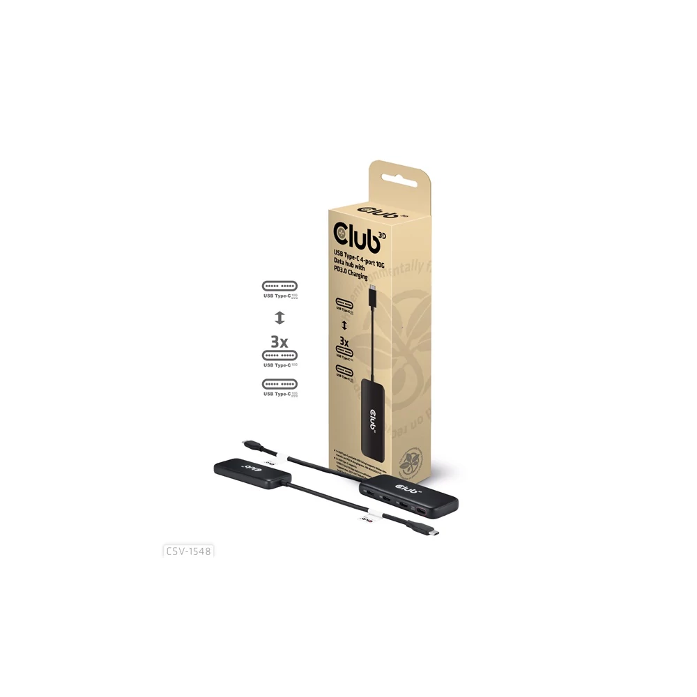 A Club 3D CSV-1548 USB Type-C® 4 portos 10G adatközpont PD3.0 töltéssel, a kompakt és átfogó szupergyors adatelosztóval gyakorlatilag minden adatátviteli perifériát csatlakoztathat, beleértve a telefonokat/táblagépeket is. A hub kompatibilis mind az új Gen2 USB-perifériákkal, mind lefelé kompatibilis a régi USB-eszközökkel, maximális adatátviteli sebessége akár 10 Gbps (1280 MB/s). Kibővített kapcsolat meglévő eszközökhöz, mint például merevlemez, SSD, USB flash, egér, billentyűzet és/vagy nyomtató. A hub támogatja a Power Delivery 3.0 töltést is 1 porton.