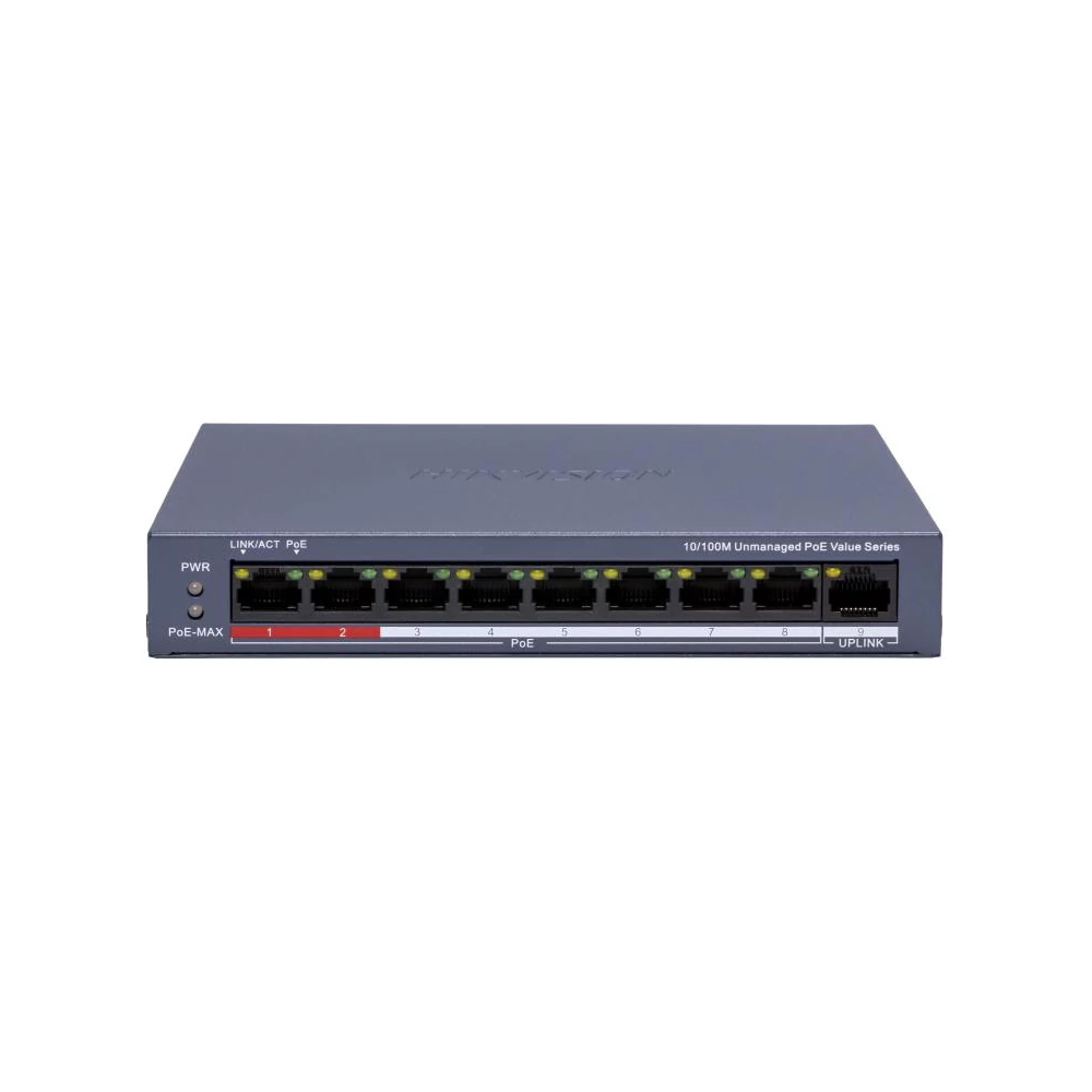 HIKVISION DS-3E0508P-O 8 portos Gbit PoE switch ; 4 PoE+ / 4 RJ45; nem menedzselhető