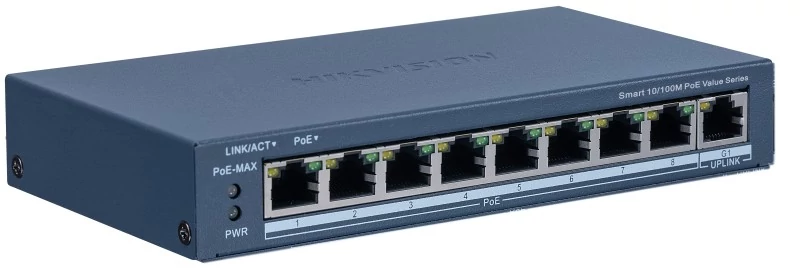 HIKVISION DS-3E0505HP-E 5 portos Gbit PoE switch ; 3 PoE+ / 1 HiPoE / 1 uplink port