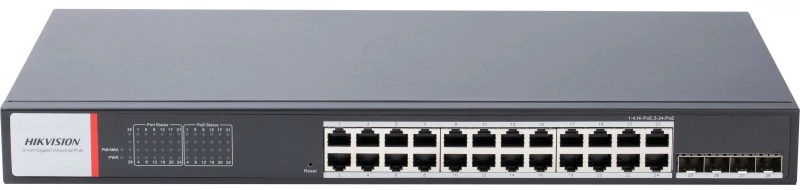 HIKVISION DS-3E0528HP-E 28 portos Gbit PoE switch ; 20 PoE+ / 4 HiPoE / 2 RJ45 + 2 SFP uplink port