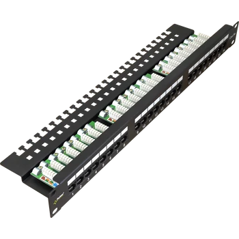 | ◾Application: Patch panel is the final element of the structured network cabling in RACK19” cabinets. Fundamental element of telecommunication networks. ◾Patch panel type: 24 ports / UTP / Cat 5e ◾Mounting dimensions: Szé=19”, Ma=1U ◾Materials: steel plate 1,2 mm, color black RAL 9004 ◾Notes: - LSA connector strip, mounted horizontally (cable ties) - Descriptions and numbering of each RJ45 connector at the front panel - four-point fixing on the front RACK rails - 4 M6 screws + cage nuts + cable ties | |