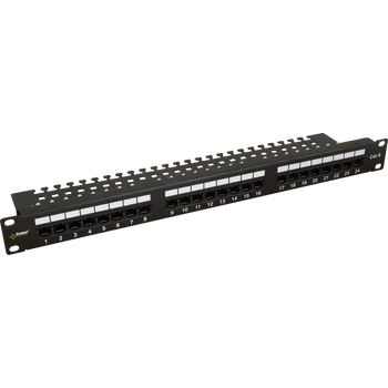 PULSAR RP-U24V6 19" patch panel; 24 port; cat6; árnyékolatlan; tehermentesítővel; 90 fokos modulok