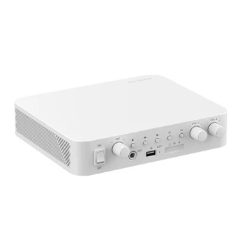 | 80 W-os erősítő Audió bemenet: Bluetooth, USB pendrive, mikrofon, RCA; Önálló mikrofon bemeneti hangerő szabályozás, két partíciós hangerő szabályozás RJ45 ethernet port HikCentral Professional támogatása | |