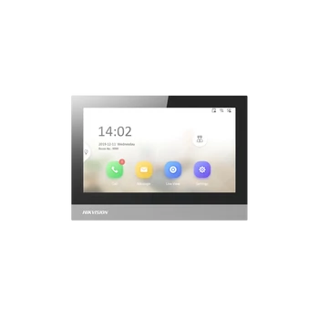 Hikvision beltéri monitor 7-os színes TFT LCD kijelző Kapacitív 1024 × 600 érintőképernyő, WIFI és 10M/100M Ethernet csatlakozás, Kártya foglalat, max. 128 Gb 12VDC vagy PoE táplálás,