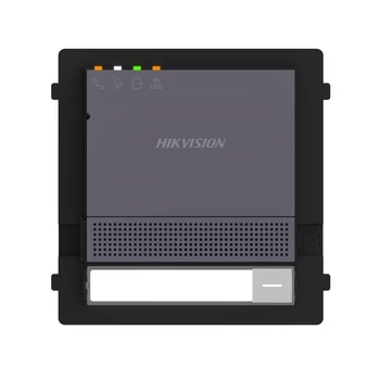 | Moduláris audio kaputelefon kültéri főegység, 2 vezetékes Aluminium felület Kompatibilis a moduláris kaputelefon sub-modulokkal 4 LED-es visszajelzés (Opening door、Calling、Intercom、In use) 2 zár vezérlő (egy mégneszár tápellátására képes, max 12 VDC, 500 mA) Tápellátás: DS-KAD7060EY or 12VDC | |