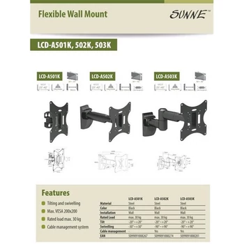 SUNNE LCD-A503K Monitor fali konzol dönthető, forgatható, 23-42", faltáv:
