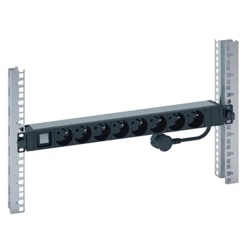 Legrand elosztó - (PDU), 19", 1U, állapotjelzős kapcsolóval, 8 aljzat, gyermekvédett, 3 méter