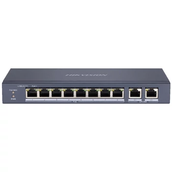 HIKVISION DS-3E0310P-E/M 10 portos PoE switch ; 8 PoE+ / 2 uplink port; nem menedzselhető