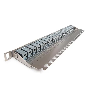 | Patch panel HD, Kategória 6A,24xRJ45/s, ezüst, csatlakozókkal, 0,5U P/N:KEP-C6A-S-HD-05 24 db keystone jackket tartalmaz (KEJ-C6A-S-HD) lehetővé teszi a nagy sűrűségű szerelést, 24 végpont 0,5U magasságban (azaz 48 végpont 1U magasságban) 19”-os kialakítás integrált hátsó kábel-menedzsment kábelkötegelők a kábelek rögzítésére (24 db) M6-os csavar készlettel (2 db) két földelési pont (a bal és jobb oldalon) felirat sáv, KEP-PRINT-HD , nem tartozéka a panelnek, külön rendelhető | |