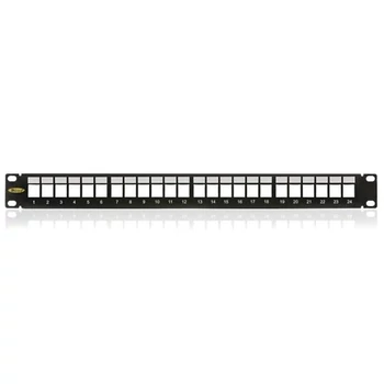 | Patch panel, 24xRJ45 csatlakozó számára, ezüst, üres P/N:KEP-EMPTY-S-NP 19”-os kialakítás integrált hátsó kábel-menedzsment kábelkötegelők a kábelek rögzítésére (24 db) M6-os csavar készlettel (4 db) földelő csavar, alátéttel (1 db) | |