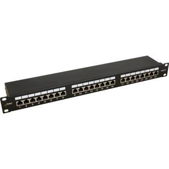 PULSAR RP-F24V6 19" patch panel; 24 port; cat6; árnyékolt; tehermentesítővel; 90 fokos modulok
