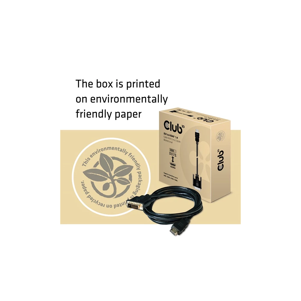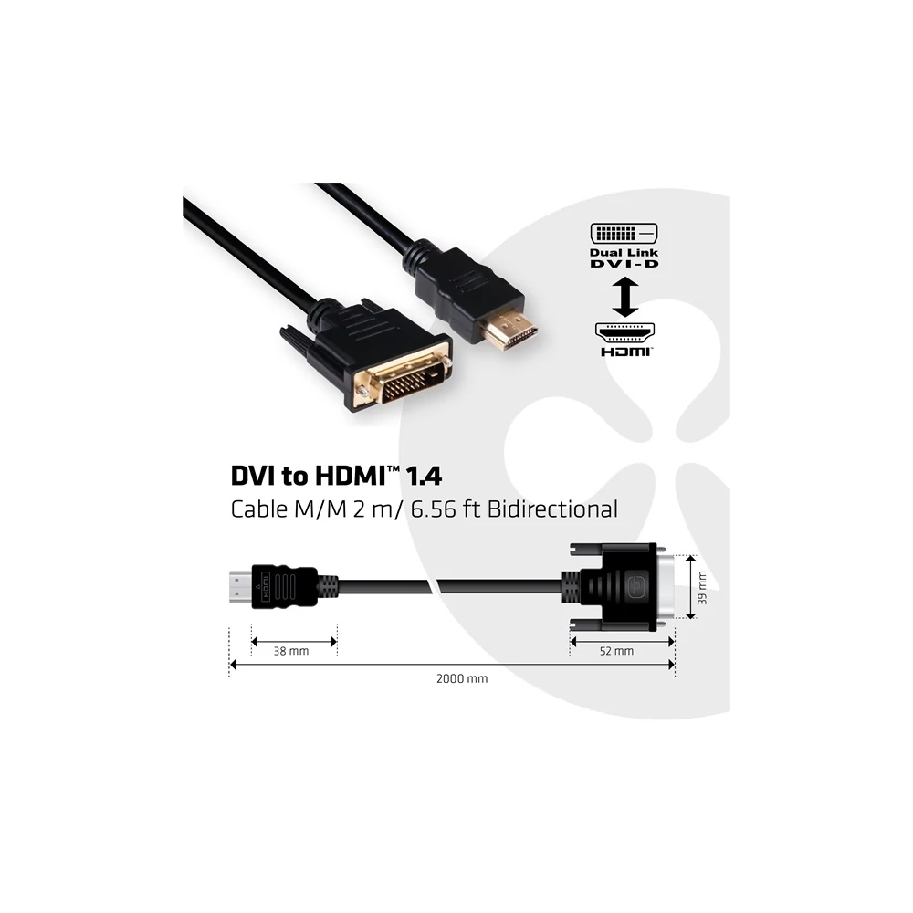 A Club 3D CAC-1210 egy DVI-D és HDMI™ 1.4 közötti átalakító kábel. Teljesen kétirányú, így használható HDMI™-ből DVI-D bemenethez is. Ez az adapter kábel a legegyszerűbb megoldás a HDMI™ monitor, projektor vagy televízió DVI kimenethez való csatlakoztatására, vagy DVI monitor, projektor vagy televízió HDMI™ kimenethez való csatlakoztatására. A CAC-1210 prémium összetevőket és aranyozott érintkezőket használ a legjobb teljesítmény és maximális felhasználói élmény érdekében, akár UHD / 3840 x 2160 felbontásig 30Hz-en. Specifikációk: • Modell: DVI to HDMI™ 1.4 kábel kétirányú M/M 2m • EAN kód: 8719214471033 • UPC kód: 841615101221 Jellemzők: • Megfelel a HDMI™ 1.4 specifikációnak • Megfelel a DVI-D Dual Link specifikációnak • Felbontást támogat UHD / 3840 x 2160 @ 30Hz-ig • Teljesen kétirányú • Nincs szükség külső tápra • Plug & Play OS támogatás: • Minden A csomag tartalma: • CAC-1210, DVI to HDMI™ 1.4 kábel kétirányú M/M 2 m Bemenet: • DVI male Kimenet: • HDMI™ male Egyéb információ: • Doboz mérete: 14.5 x 14.5 x 4.5 cm • Kábel tömege: 104 g • Doboz tömege: 45 g • LDPE tasak tömege: 5 g • Teljes tömeg: 154 g • Kábel hossza kb.: 2 m • DVI csatlakozó méretei: 5.2 x 4 x 1.6 cm • HDMI™ csatlakozó méretei: 4.6 x 2.1 x 1.2 cm Tanúsítványok: • Megfelel az ROHS, FCC, és CE EMI követelményeknek. Gyártói termékoldal