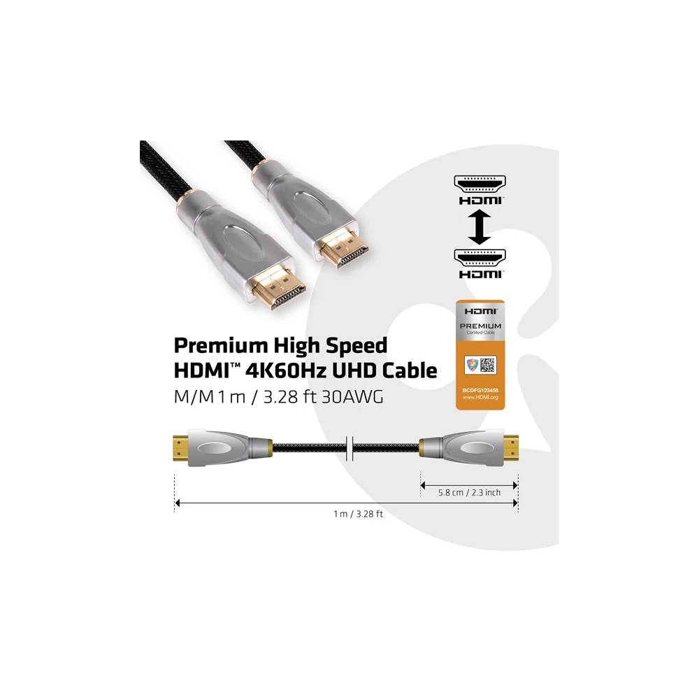 A Club 3D CAC-1311 Premium High Speed HDMI™ 4K60Hz UHD kábel lehetővé teszi a HDMI™ 2.0 támogatott Gaming PC vagy Laptop csatlakoztatását egy (Ultra) High Definition Monitorhoz vagy más HDMI™ 2.0 támogatott eszközhöz. Teljes mértékben támogatja a „Premium High Speed HDMI™ with Ethernet” specifikációt, biztosítva a videó támogatását egészen 4K UHD 3840x2160p 60Hz-ig, valamint a HDR, audió és adatfolyamok támogatását. A kábel ötvözi a HDMI™ kapcsolat páratlan jelminőségét és kényelmét a házimozi hálózatának erejével és rugalmasságával. Fel van szerelve egy külön adatcsatornával a HDMI™ kapcsolaton belül, lehetővé téve a magas sebességű hálózatépítést akár 100 Mbps sebességgel is. Ez az ideális megoldás a jövőbiztos HDMI™ 4K UHD Gaming és megtekintési élményhez. Specifikációk: Modell: Termék név: Premium High Speed HDMI™ 4K60Hz UHD Kábel M/M 1 m / 3.28 ft 30AWG Terméksorozat: Kábel Cikkszám: CAC-1311 EAN Kód: 8719214470708 UPC Kód: 841615100873 Jellemzők: • Premium High Speed HDMI™ Ethernettel specifikációnak megfelelő • Professzionális minőségű kábel 30 AWG • Támogatja a HDMI™ 2.0 specifikációt • Visszafelé kompatibilis HDMI™ 1.4 specifikációval • Teljes mértékben kétirányú • Támogatja az (U)HDTV felbontásokat akár 3840x2160 @ 60Hz és HDR-ig • Támogatja a 3D felbontásokat akár 1920x1080p Full HD @ 120Hz-ig • Összes adatátvitel 18Gbps, három sávon, 6Gbps sávonként OS támogatás: Mindet Csatlakozók: HDMI™ Male HDMI™ Male Egyéb információ: • Doboz mérete: 14.5 x 14.5 x 4.5 cm • Kábel hossz: 1 m / 3.28 ft • Csatlakozó méretek: 5.8 x 2 x 1 cm • Eszköz súlya: 104 gr • LDPE tasak súlya: 5 gr • Doboz súlya: 45 gr • Teljes súly: 154 gr • Megfelel ROHS, FCC, és CE EMI követelményeknek A doboz tartalma: Club 3D Premium High Speed HDMI™ 4K60Hz UHD Kábel 1m/3.28ft Gyártói termékoldal