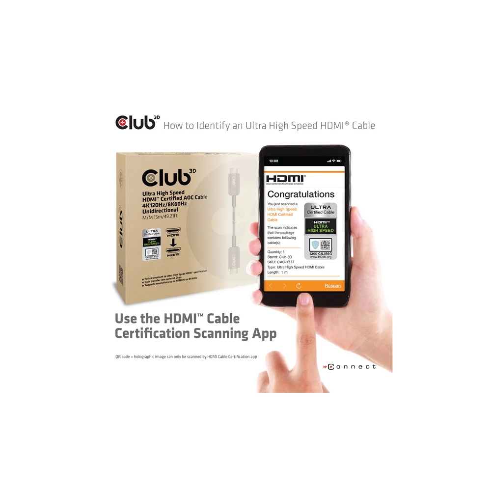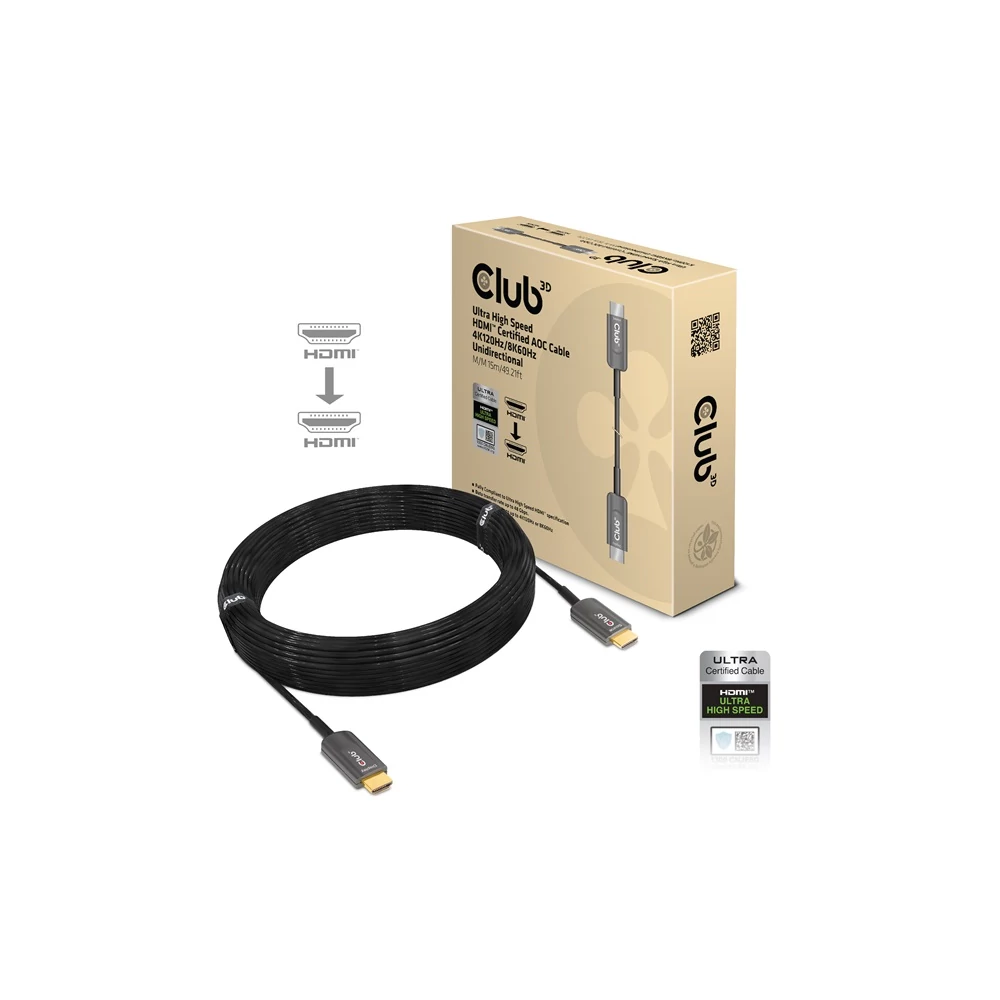 Club 3D | Ultra High Speed HDMI™ Certified AOC Cable 4K120Hz/8K60Hz Unidirectional M/M 15m/49.21ft