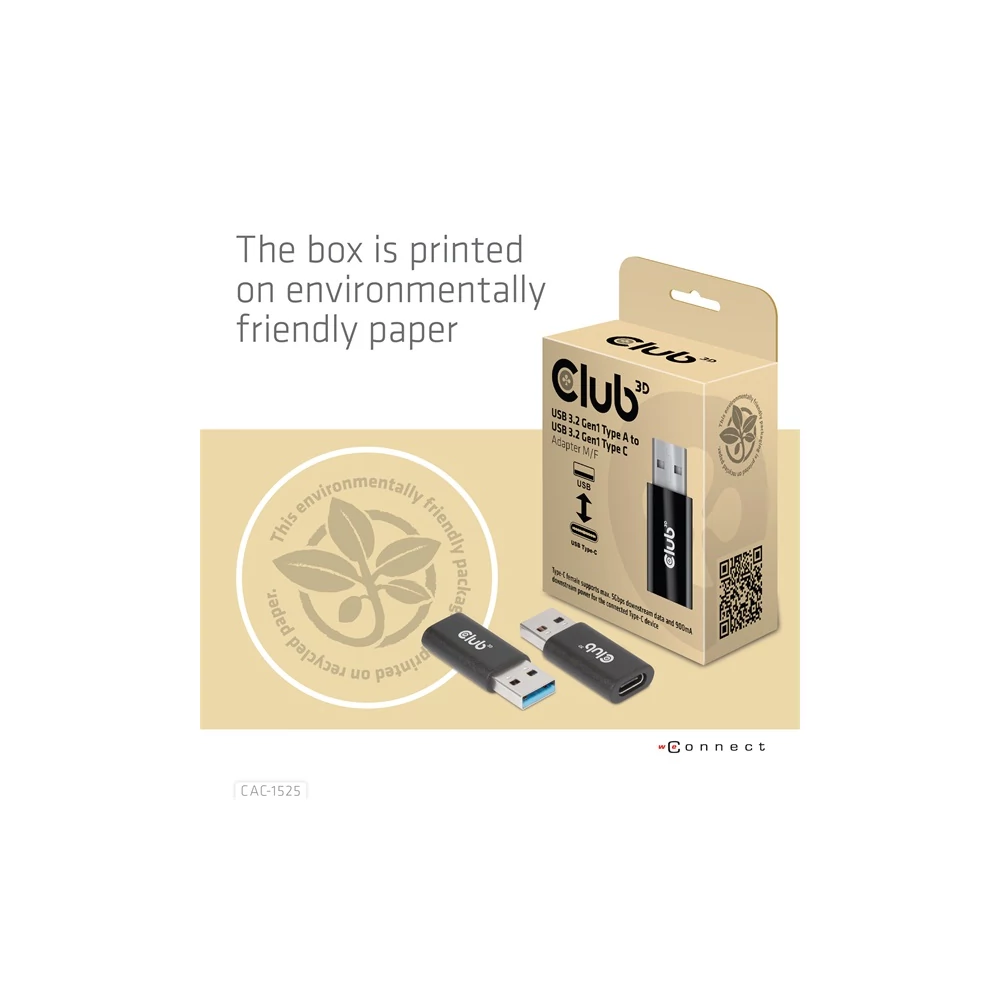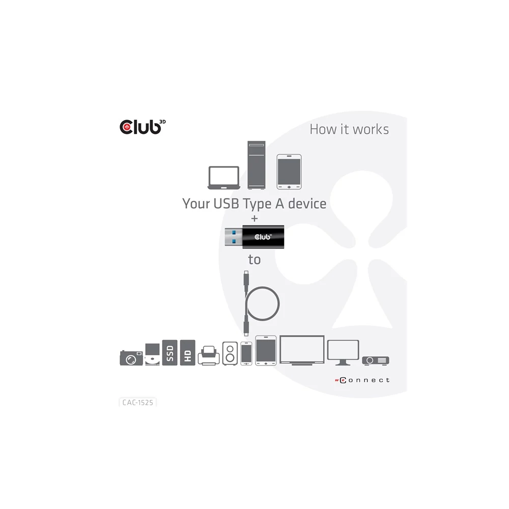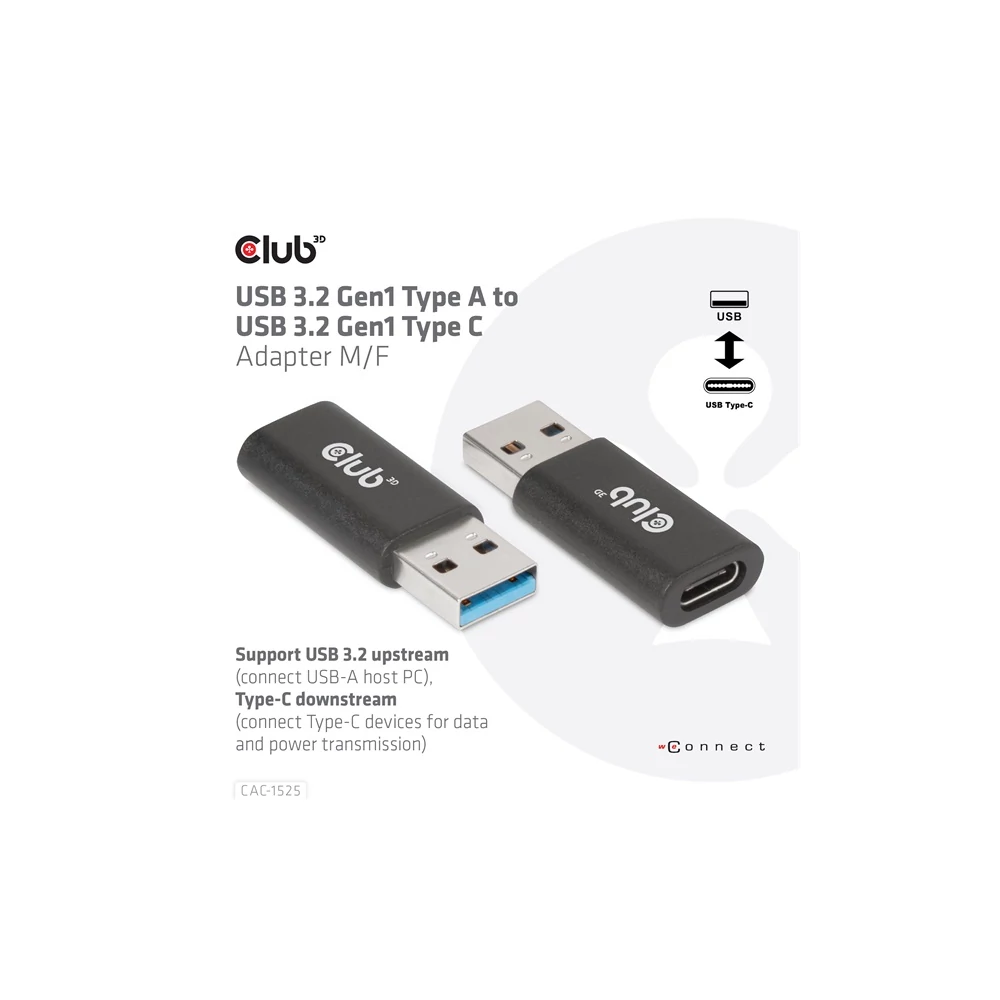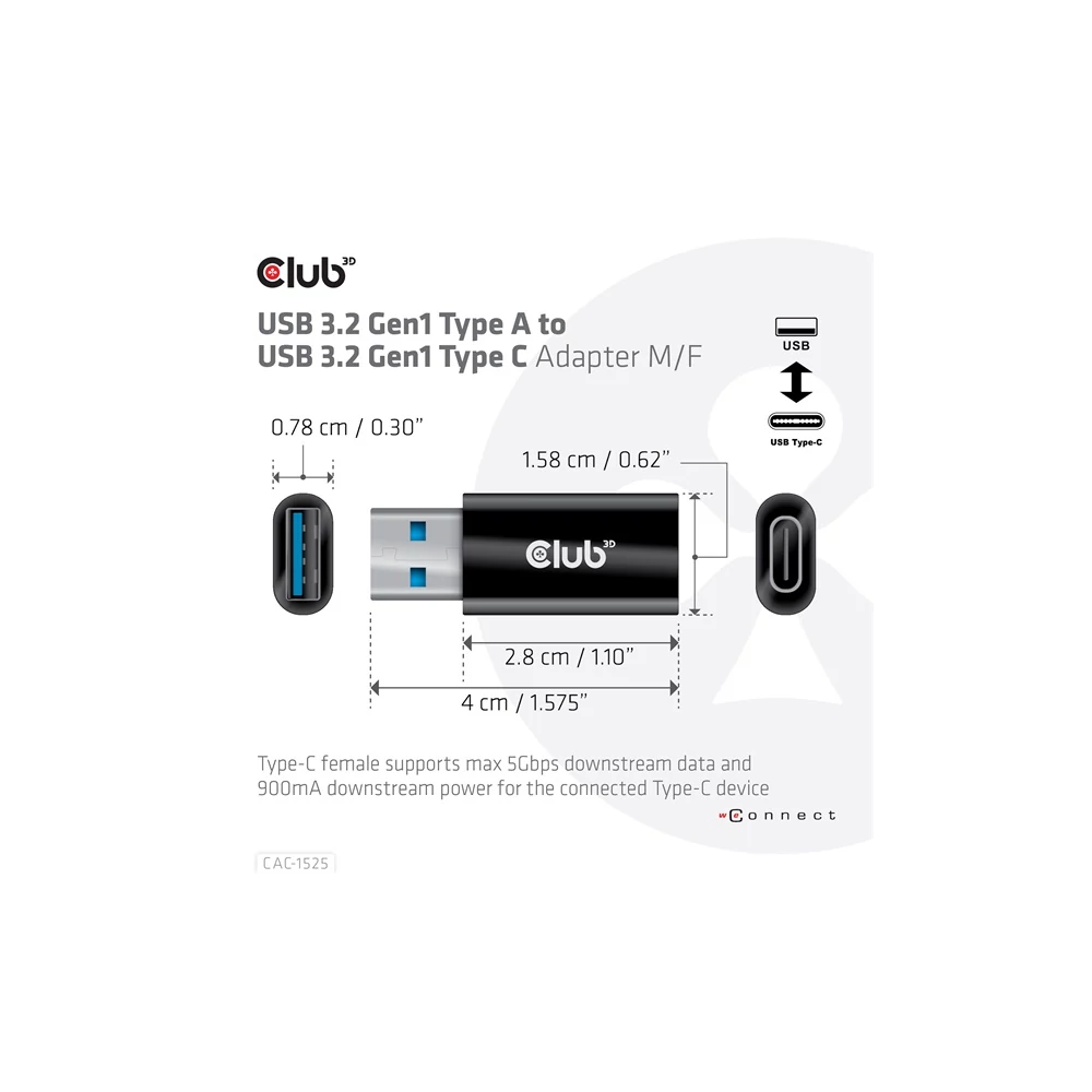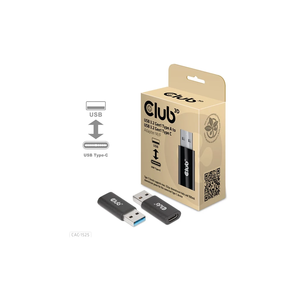 CAC-1525 A Club 3D USB 3.2 Gen1 Type A–USB 3.2 Gen1 Type C adapter, amely lehetővé teszi, hogy USB-A porttal rendelkező gazdaszámítógépét C típusú porttal rendelkező eszközökhöz (például USB-lemezhez, mobiltelefonhoz) csatlakoztassa a downstream adatok és tápellátás érdekében. Ezenkívül ezen a terméken keresztül csatlakoztathat egy Type-C-USB-elosztót az USB-A gazdaszámítógéphez az adat- és energiaátvitelhez.