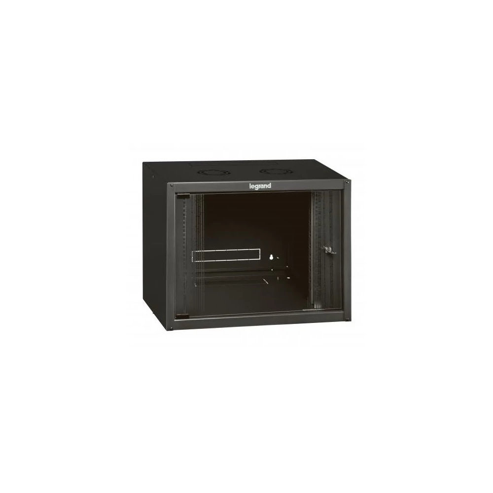 Legrand Rackszekrény - 19" fali kivitel (9U, 494x600x450, antracit, egyrekeszes, üvegajtós, készre szerelt max: 27 kg)