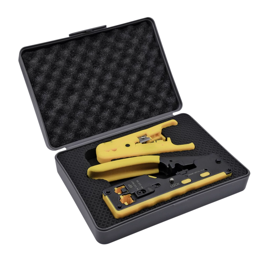 NESTRON NTC-7088K Moduláris krimpelő fogó átfűzhető csatlakozókhoz + kábel csupaszító szerszám, dobo