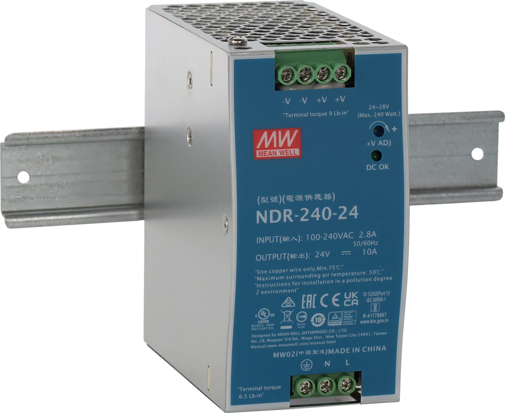 Tápegységek 90 - 264 V AC, 127 - 370 V DC Kimeneti feszültség 10 A / 24 V DC feszültség állítási határok: 24 - 28 V DC Hatásfok 88.5% Külső méret 63 x 125.2 x 113.5 [+/-2 mm] Védelem SCP, OLP, OVP, OHP Kijelzés LED kijelzés Garancia 3 év a gyártás dátumától számítva
