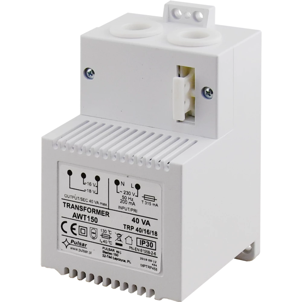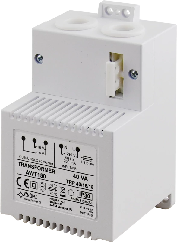 PULSAR AWT150 Transzformátor; 230 VAC / 16/18 VAC, 40 VA; IP30