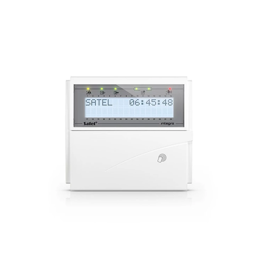SATEL INT-KLFR-W LCD kezelő INTEGRA központokhoz; kártyaolvasóval és lenyíló billentyűzetvédővel; fe