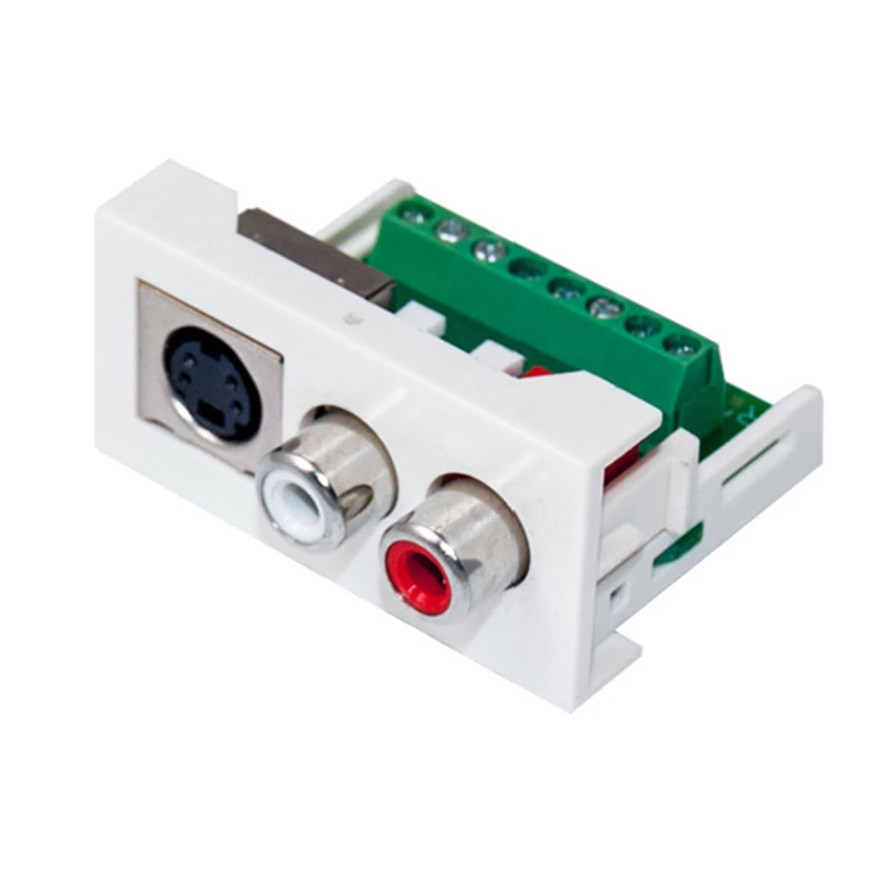MODD-SV+2RCA 45 rendszer SV+2RCA modul RCA gyári csatlakozó Vörös fehér S Video gyári csatlakozó aljat sorkapocs 8pin 1modult foglal