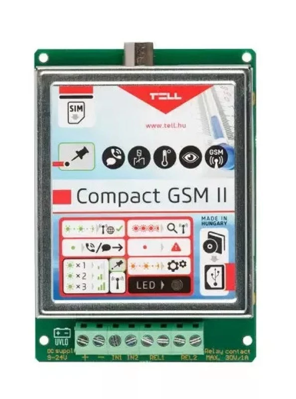 TELL Compact-GSM-II-4G-IN2-R2 Compact GSM II 4G kommunikátor; 2 zónabemenet; 2 relés kimenet; KA0896