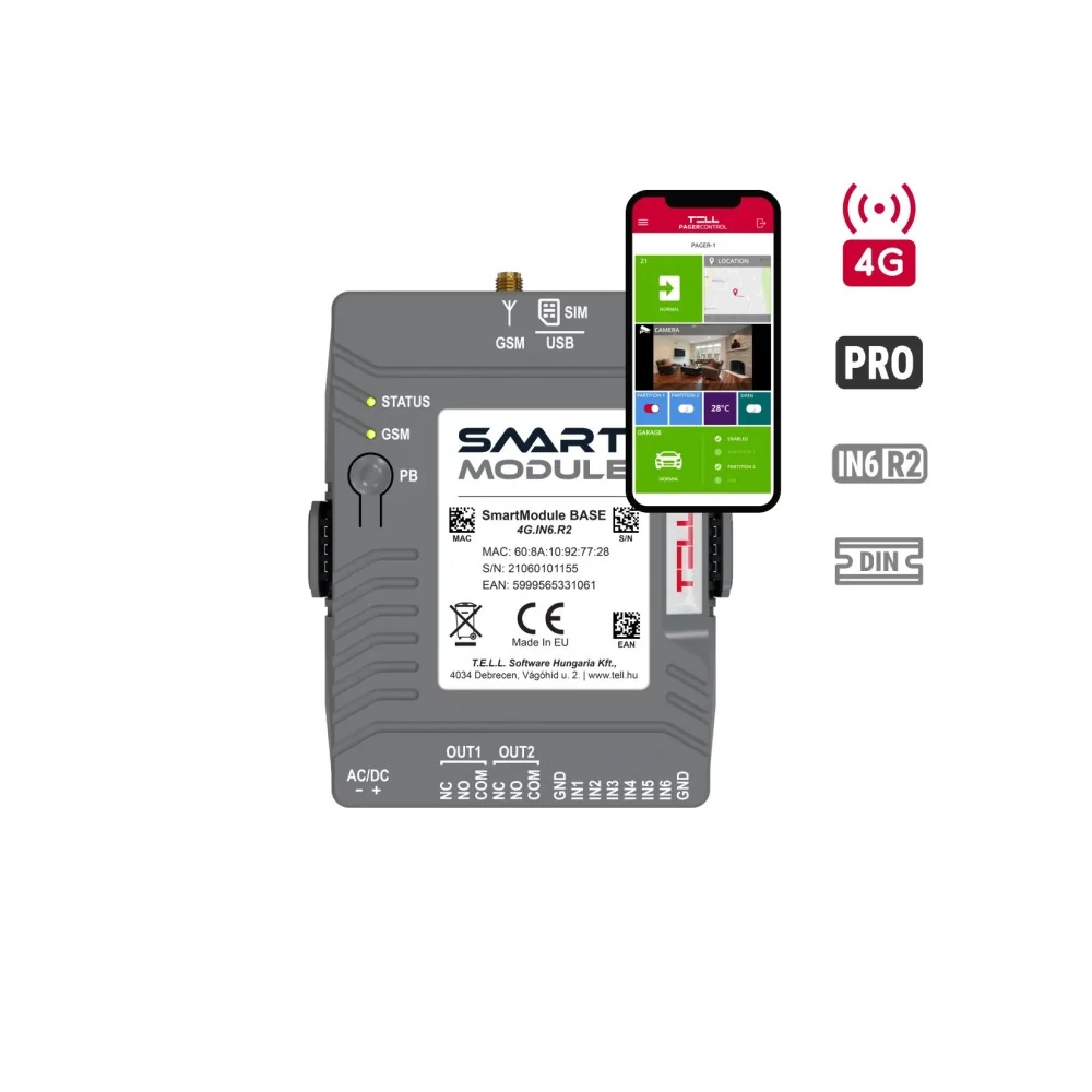 TELL SOFTWARE HUNGÁRIA KFT Pager4-4G-IN4-R2 4G kommunikátor, 4 bemenettel, 2 NO relé kimenet